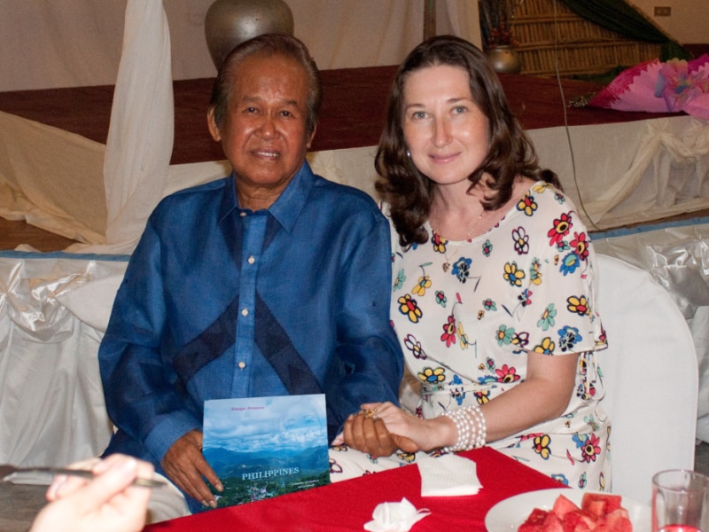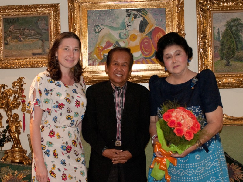 With Imelda Marcos at the Peninsula Hotel in Makati